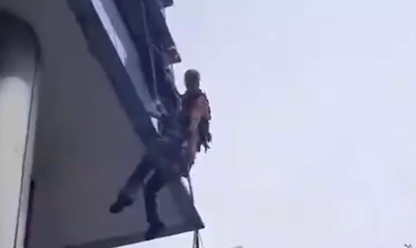 El episodio ocurrió en la zona de Cecilia Grierson al 100, entre la avenida Alicia Moreau de Justo y Pierina Dealessi, en el contrafrente de un edificio perteneciente a una empresa de telefonía. Allí, un trabajador que realizaba tareas en la fachada quedó colgado a la altura del segundo piso.