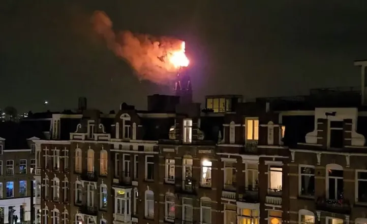 Caos y violencia en Ámsterdam: un incendio arrasa una iglesia histórica y deja dos muertos