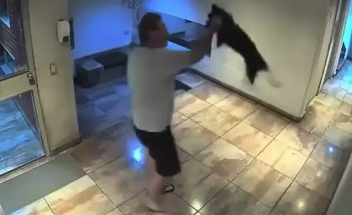 Las grabaciones mostraron al sospechoso, identificado como Gonzalo Calderón, descendiendo de las escaleras detrás de su perro. En un momento, el hombre sujetó al animal del lomo, lo levantó del suelo y lo arrojó violentamente contra el piso, causando gran alarma entre los vecinos.