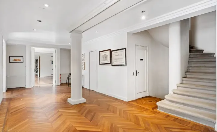 Por su parte, el segundo piso es de uso privado, con un living íntimo y cinco dormitorios adicionales, y el tercer piso cuenta con un gimnasio, un salón de estar y una terraza equipada con parrilla. La propiedad está equipada con dos ascensores y dos escaleras para facilitar la movilidad.