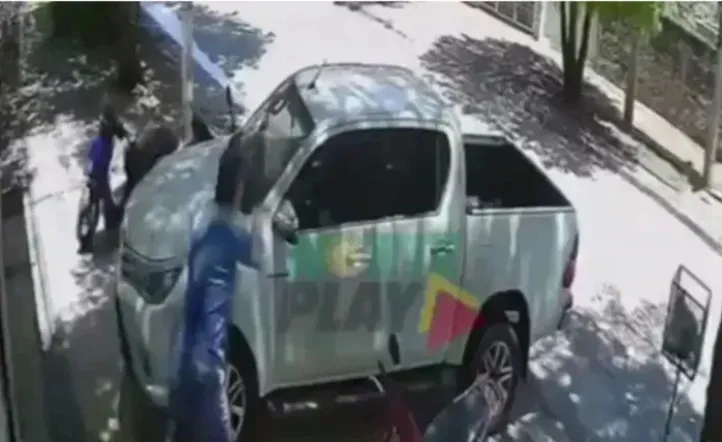 La situación escaló rápidamente. En lugar de una charla, el hombre comenzó a insultar a la mujer y, en un arranque de ira, le rompió el parabrisas de su Toyota Hilux con un palo mientras sonaba la canción “Dime que No”.