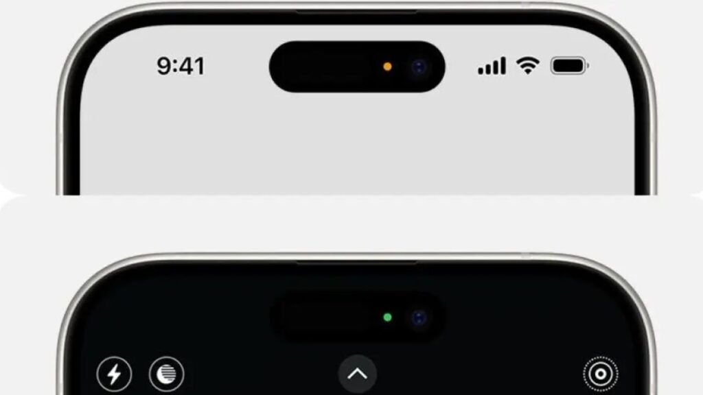 En los nuevos modelos de iPhone, los indicadores de uso aparecen en la Isla Dinámica o en la barra de estado. Se distinguen principalmente dos colores: